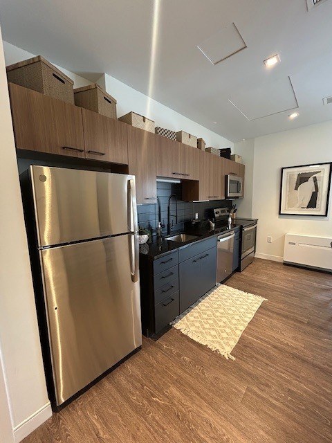 The Armature features 171 modern apartments that draw inspiration from its industrial setting. The Armature offers a variety of spacious studios, one-bedrooms, one-bedroom + offices, two-bedrooms, and two-bedroom + offices throughout its eight floors. Experience an unmatched residential experience complete with high-end finishes, smart home build-ins, private balconies (select units), and luxury features. Departing from the current standard, The Armature includes a coveted collection of onsite amenities – including a Pool + Courtyard, indoor-outdoor Fitness Center, Coworking Lounges, Sky Deck, and more.