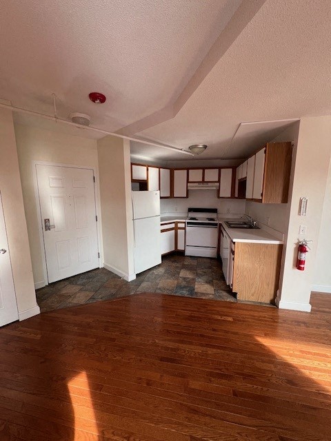 New tile in kitchen and new hardwood flooring throughout the living room and bedroom. Nice functional kitchen with dishwasher is open to dining area and living room. Large bedroom with two closets (and another just inside the entry door!). Lots of windows allow for lots of natural light and nice views. Highly desired location just a short walk to the Old Port and all of downtown Portland.